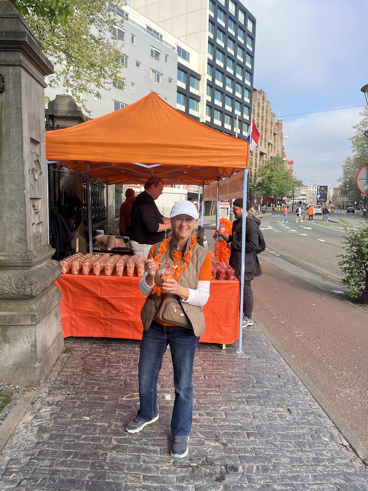 We started out pretty mild at 8 am by walking over to a children and family celebration in Vondelpark. We got some strawberries covered in orange chocolate on the way.